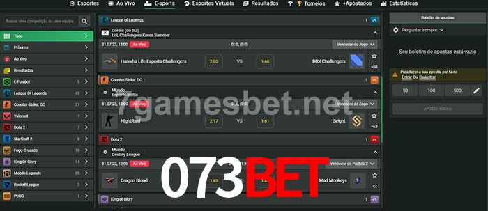 O 073bet oferece uma grande seleção de opções de apostas em e-sports com probabilidades competitivas